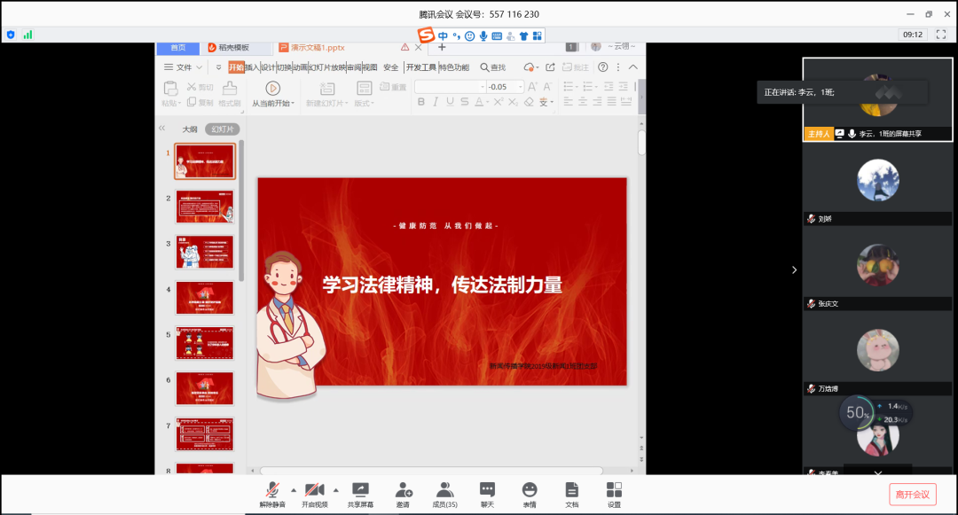 为提高同学们的国家安全法治意识,增强大家对国家安全和疫情防控办法法律法规的认识,4月15日下午,我院组织2019级各班开展了以"学习律法精神,传递法制力量"为主题的线上团日活动。
