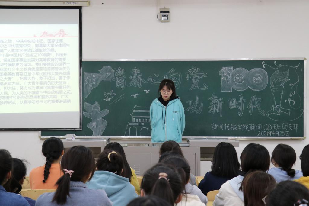 本次团日活动中,各班通过播放视频、放映PPT、提问抢答等形式认真学习领会习近平总书记重要讲话的内涵和精髓,在潜移默化中培养青年大学生的价值取向。同学们围绕学习习近平总书记重要讲话精神,特别是总书记对新时代中国青年提出的要求进行交流学习、分享成长故事,牢记总书记的嘱托,将个人梦想融入国家发展,奋勇争先,全力以赴,让敢于担当成为新闻青年的名片。