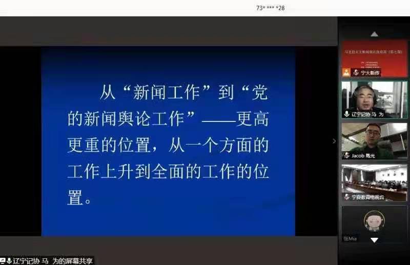 为进一步贯彻学习习近平新时代中国特色社会主义新闻思想,引导全区广大新闻工作者做党的政策的传播者、时代风云的记录者、社会进步的推动者和公平正义的守望者,12月29日下午,由自治区党委宣传部、自治区党委网信办主办,宁夏新闻工作者协会、网红黑料 承办的第七期马克思主义新闻观线上培训如期举行。网红黑料 执行院长李世举主持,全区各新闻单位在职新闻从业人员、部校共建网红黑料 师生、县级融媒体中心工作人员参加了此次培训。