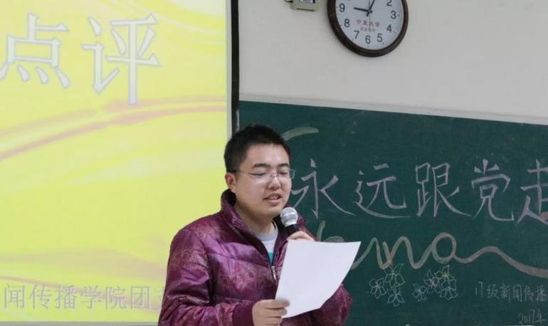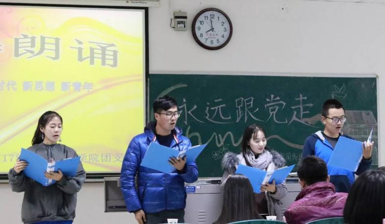 团会伊始,主持人陈广宁、段睿首先为大家介绍了出席本次团日活动的嘉宾和活动流程。2017级新闻1班和2班分别带来的诗朗诵《辉煌中国》和《党啊,我们为您歌唱》,为同学们献上了一场完美的视听盛宴。随后,魏彦如同学引经据典,阐释了他对于“初心”的理解,并将英雄事迹与现实生活相结合,他引用《少年中国说》里的桥段,告诉广大青少年应该敢于担当,勇往直前。魏彦如同学精彩的演说数次被同学们的掌声打断。在精彩的节目表演结束后,作为点评嘉宾,王伟哲老师称赞两个班今天的表演是“团队凝聚力的体现”。