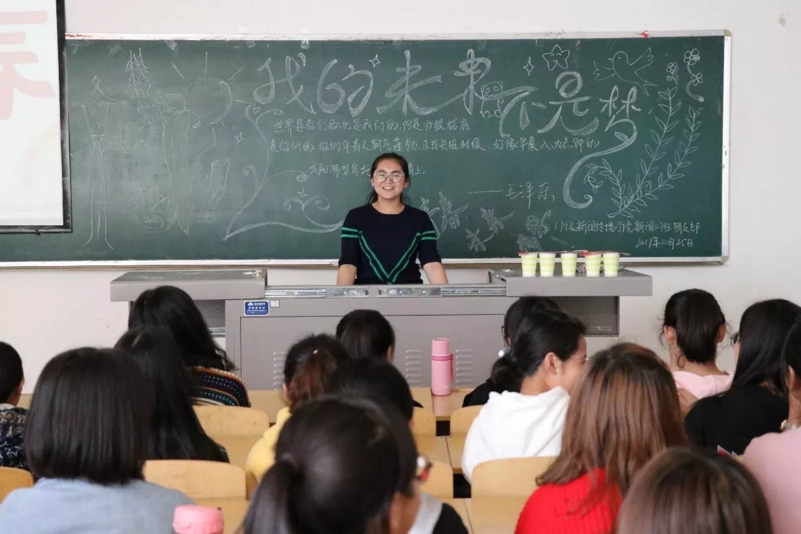 10月25日下午2点,网红黑料 2017级团支部分别于文科楼207、209教室开展了主题为“青春飞扬,我的未来不是梦”的主题团日活动。活动分别由两班团支书范姝雨、鲜少欣主持,2017级全体学生参加。