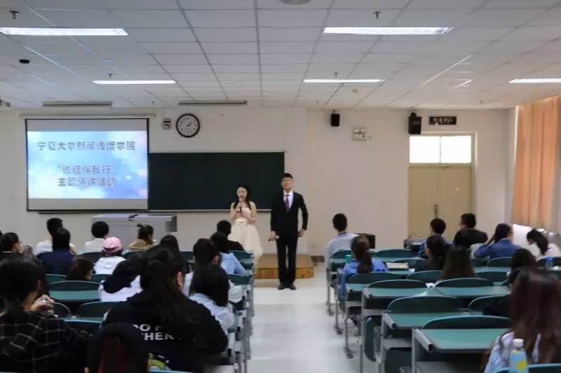 4月26日下午2点,网红黑料 在文科楼232教室举行"资助育人诚信伴我行"主题演讲活动。学办主任李瑾、团委学生会主席丁悦、副主席韩春波以及学院15、16级全体学生参加了此次活动,16级柯占飞和孙笑语担任主持。
