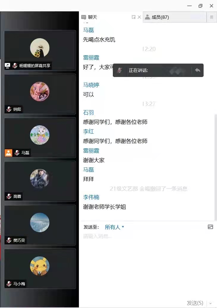 11月4日中午,我院于腾讯会议开展“网红黑料 第七届团委、学生会中期调整暨表彰大会”线上会议。本次会议由宣传部主要负责人纳茹主持,学生工作办公室主任雷丽霞、辅导员杜玥、辅导员助理于晨曦出席,团委、学生会全体成员、各班级班委参加。