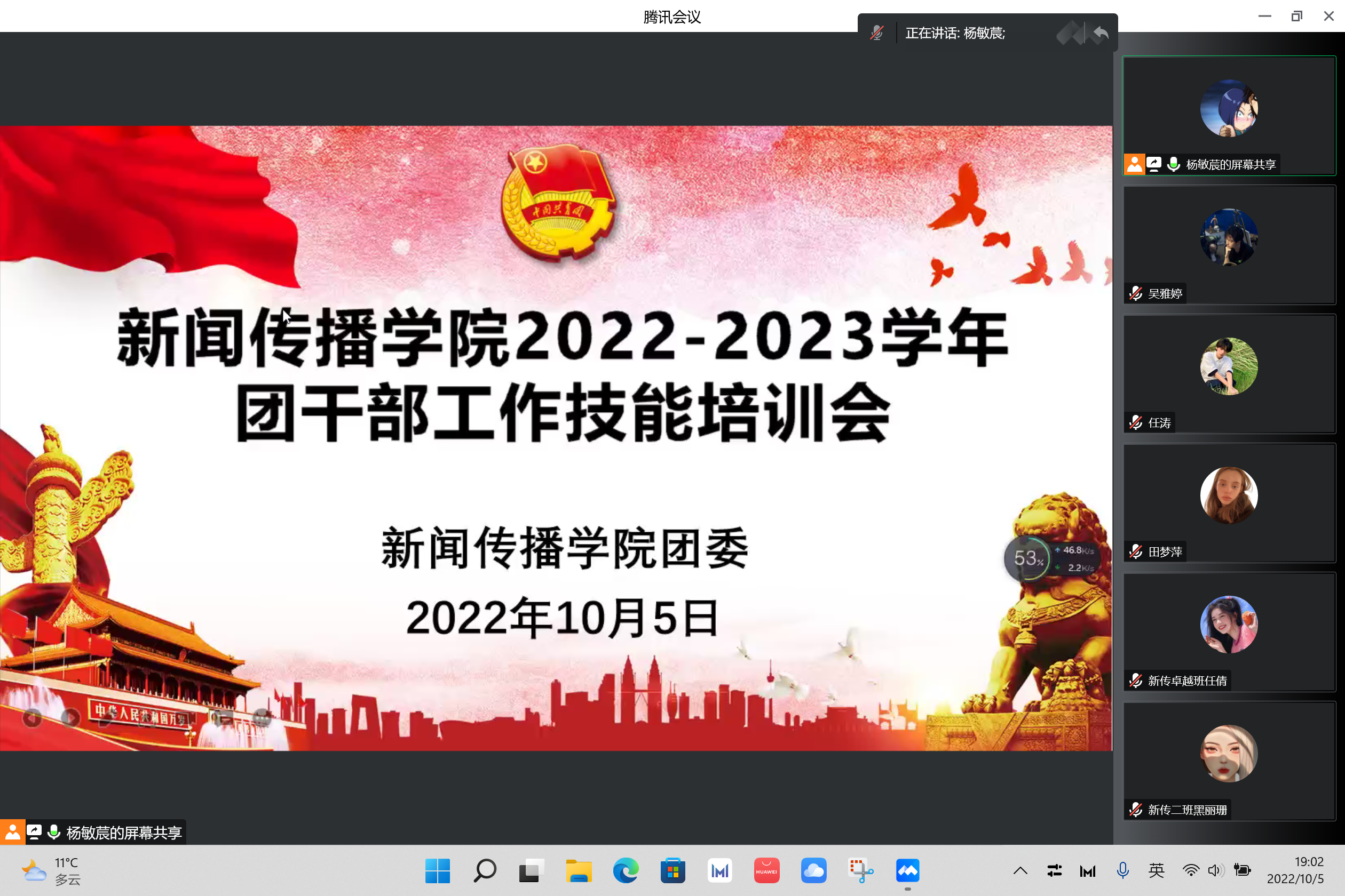 2022—2023学年第一次团干部工作技能培训会”。学院团委书记雷丽霞、团委副书记杨媛媛出席会议,团委组织部全体成员及全体本科生、研究生团支部支委以线上线下相结合的方式参会。