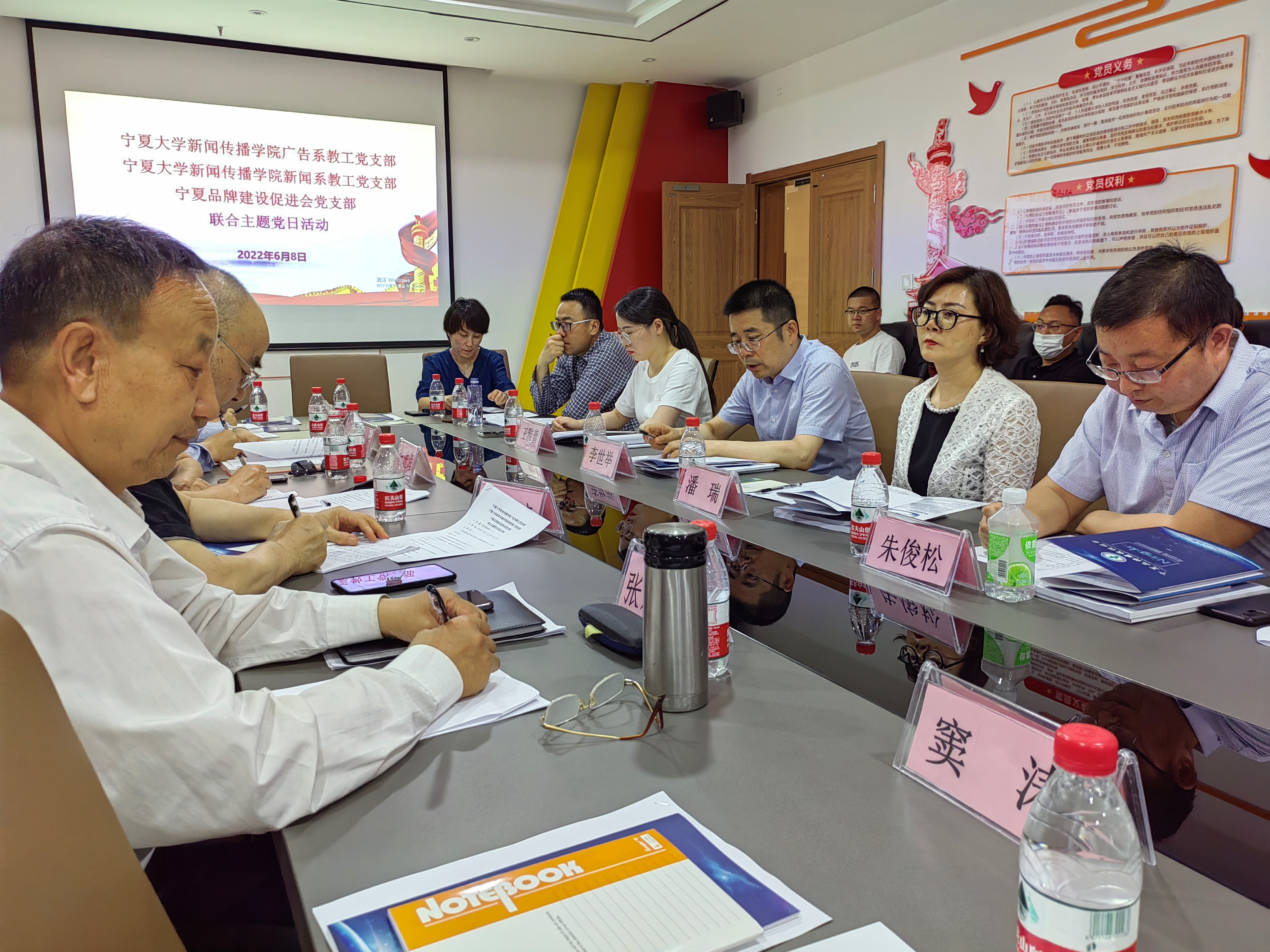 双方就宁夏品牌打造和宣传展开讨论、寻求进一步合作。广告系党支部书记朱俊松、新闻系党支部书记王雅蕾、新进博士赵雅洁、叶刚、王琼、张小刚、于璇以及教师代表顾广欣、张春波做了重点发言。宁夏品牌建设促进会副秘书长李硕、促进会高级经济师孙光贵、常务副会长张进海、会长李国庆先后发言。大家就开设《品牌》课程、联合建设全区品牌传播研究智库、共同推出宁夏企业品牌影响力年度报告、调研企业需求、开展品牌诊断、联手讲好宁夏品牌故事等方面展开了交流。潘瑞书记在总结发言中指出,要加强合作机制建设,共同搭建好平台、组织好活动。进一步彰显“品牌热情”、释放“品牌活力”,让品牌引领宁夏发展。
