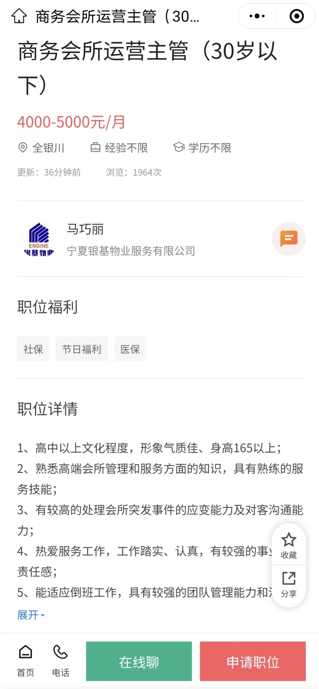 岗位:商务会所运营主管