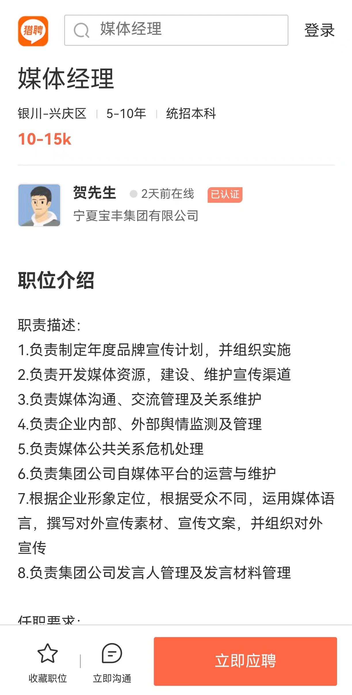 岗位:媒体经理