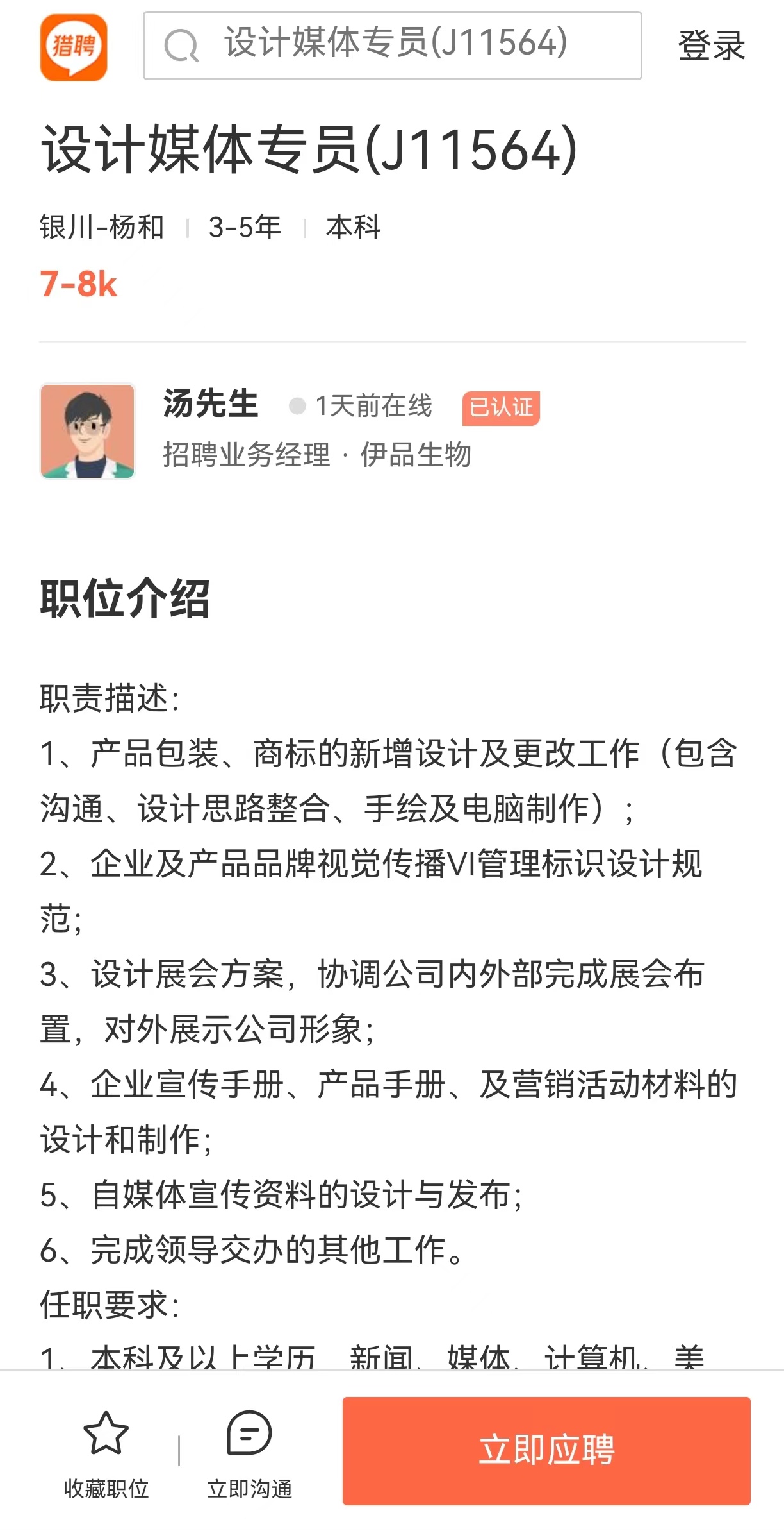 岗位:设计媒体专员