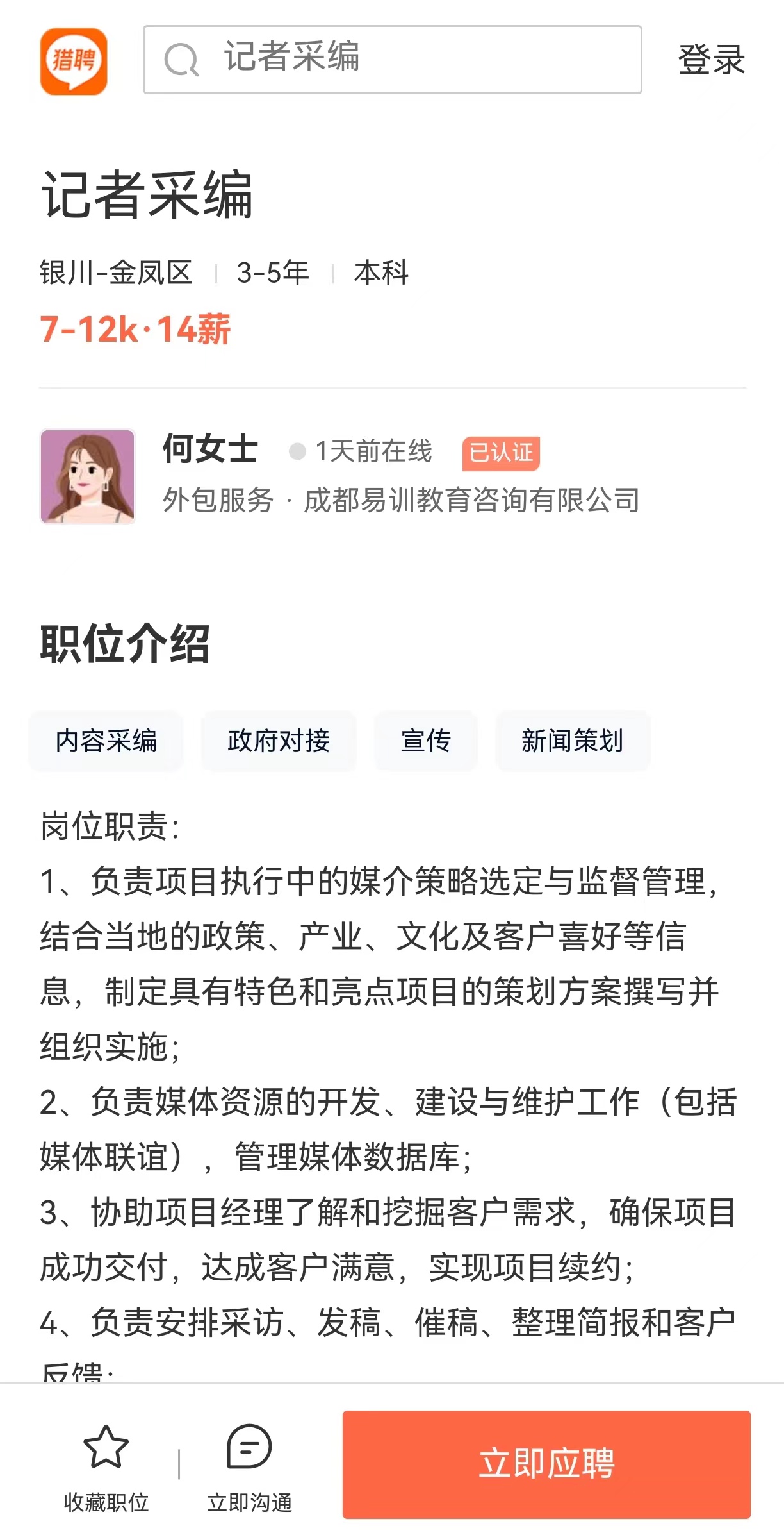 岗位:记者采编