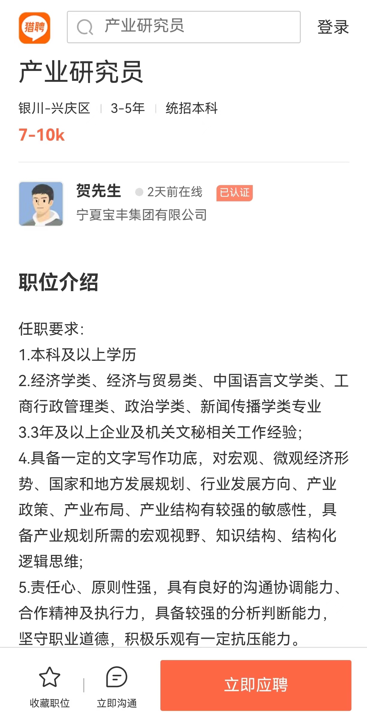岗位:产业研究员