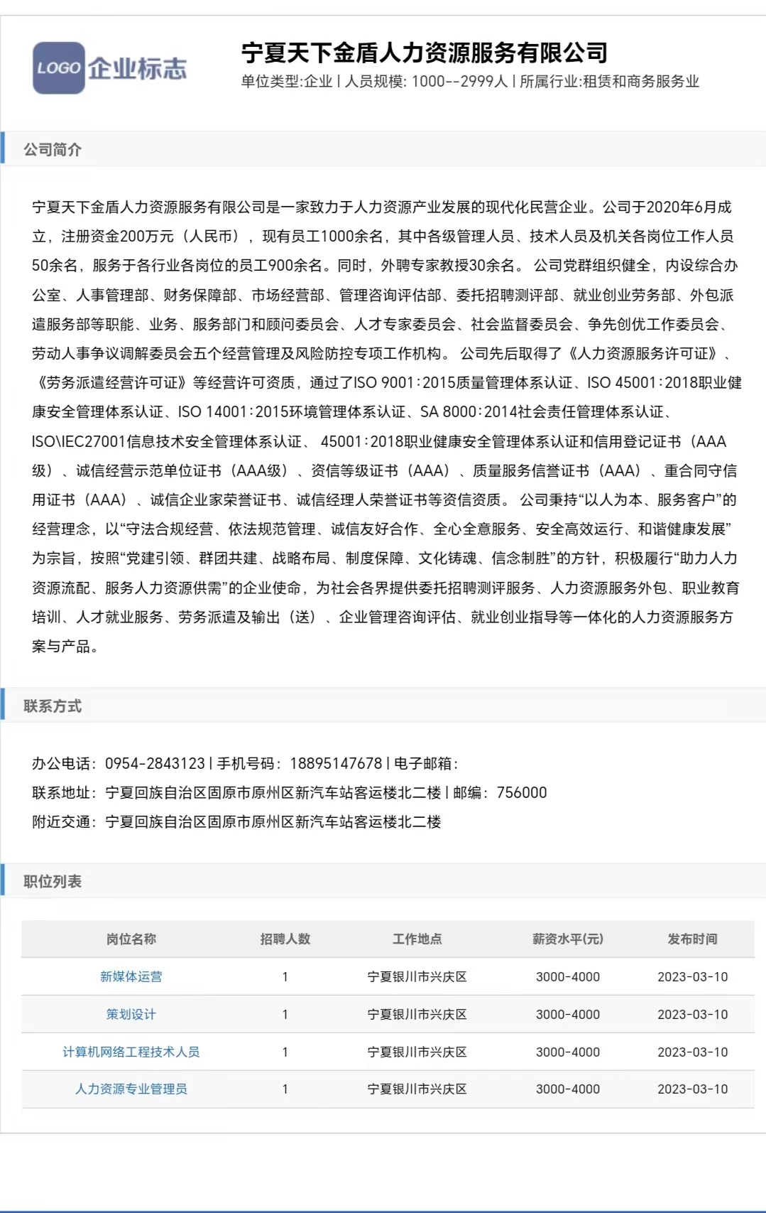 3.公司:宁夏天下金盾人力资源服务有限公司