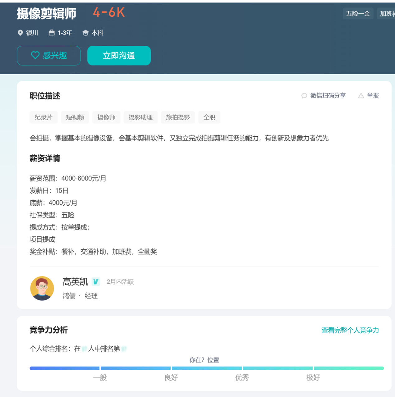 岗位:摄影剪辑师
