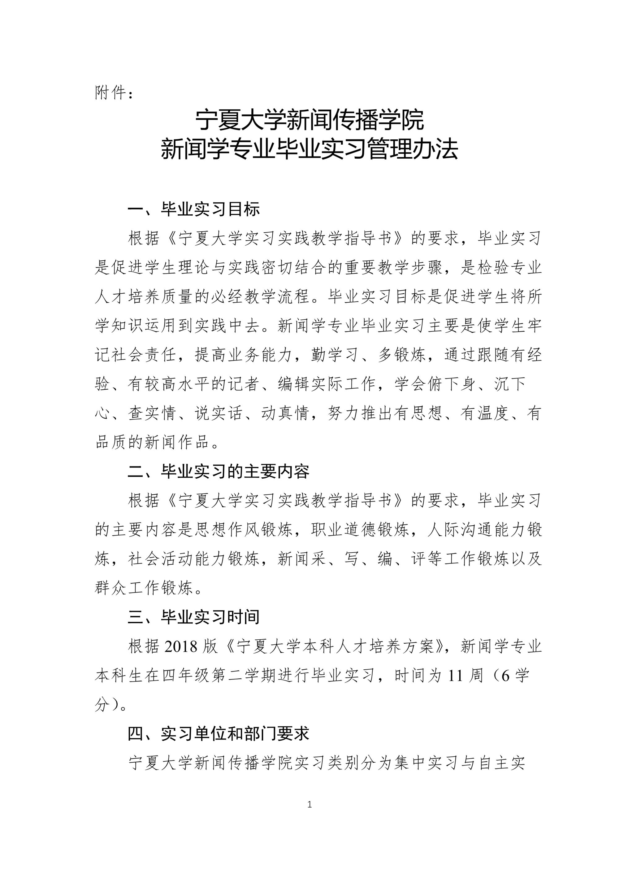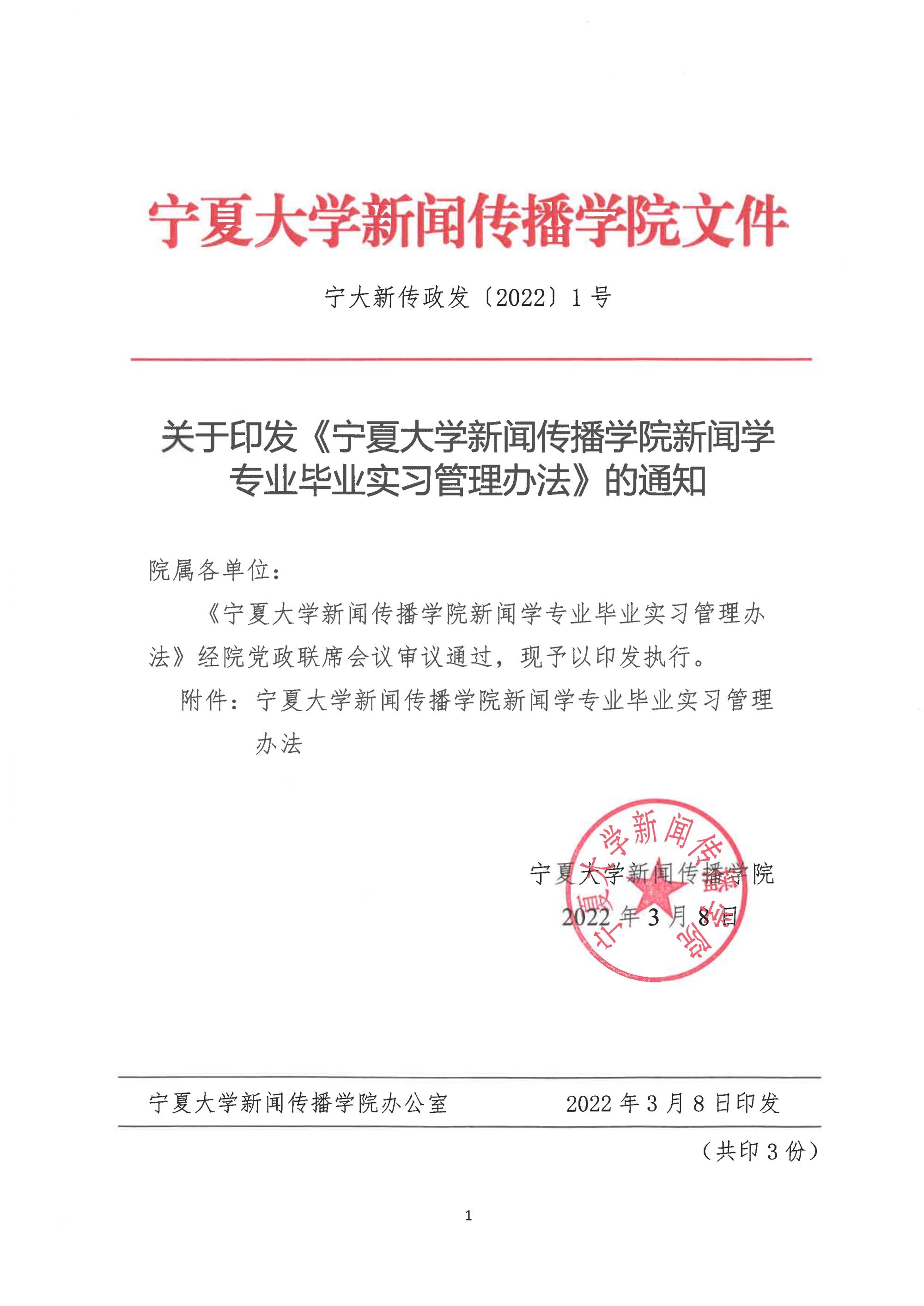 宁大新传政发〔2022〕1号 关于印发《网红黑料 新闻学专业毕业实习管理办法》的通知