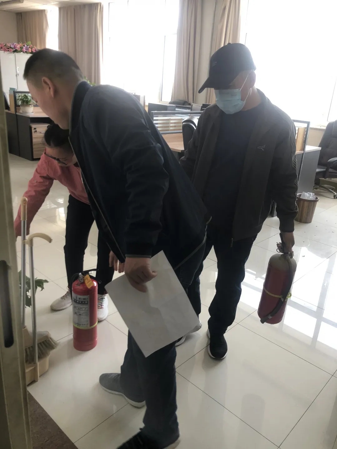 开学前期,学院进行了一次消防安全大检查,并将检查结果及时汇报给学校保卫处。4月30日,保卫处对我院文荟楼各办公室、档案室进行了消防安全检查,从消防设施是否齐全、消防通道是否畅通、应急预案是否健全等进行全面督察,重点检查了学院防火设施器材的配备、摆放情况,并帮助学院更新了过期灭火器。