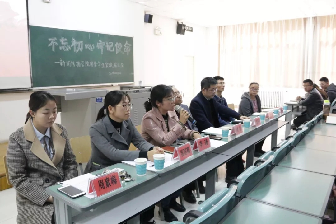 团委、学生会换届大会”。出席此次会议的有学院党总支书记周强、常务副院长李世举和学院各行政办公室的老师。会议由学办主任李瑾老师主持,全体学生参加。