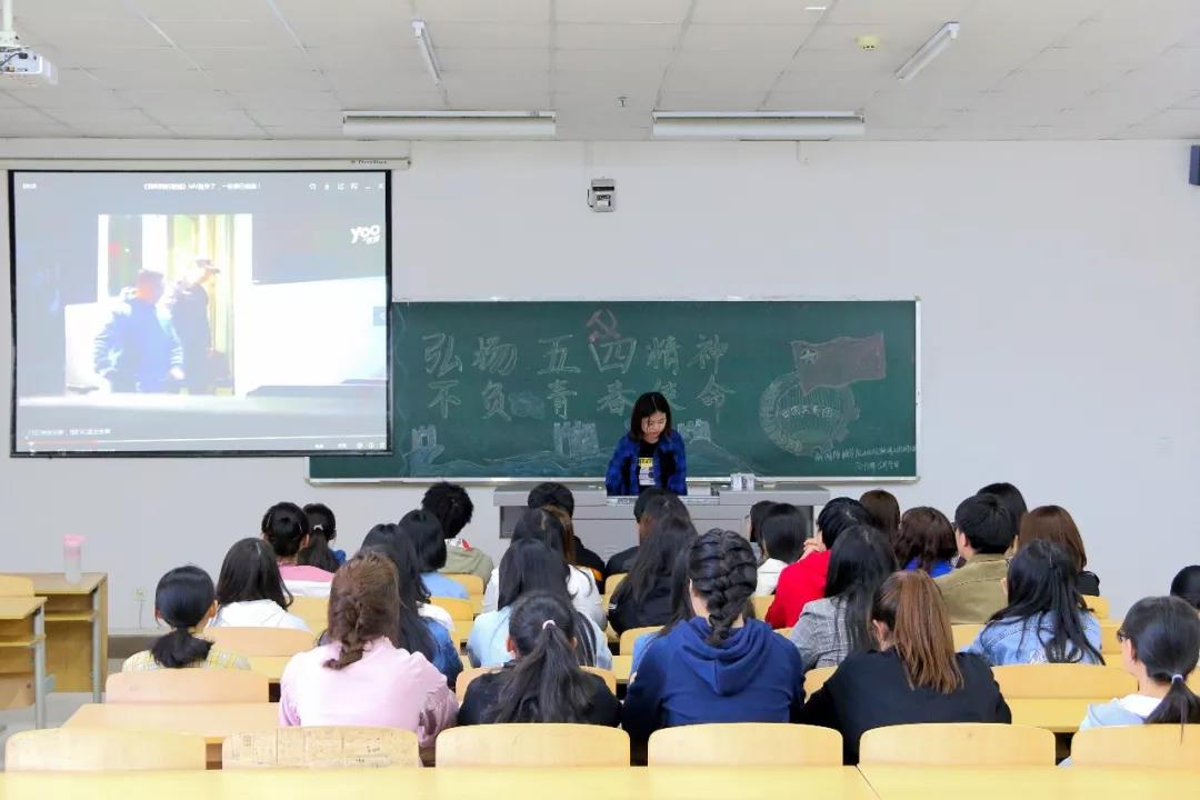 为纪念五四运动100周年,激励当代青年勇担时代重任,争做时代先锋,5月9日,我院组织2018级学生分别于文荟楼207、209教室开展了主题为“弘扬五四精神,不负青春使命”的团日活动。