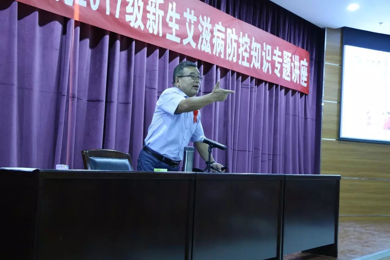 2017级新生在文荟楼聆听了生命科学学院徐明教授的艾滋病防控知识专题讲座。