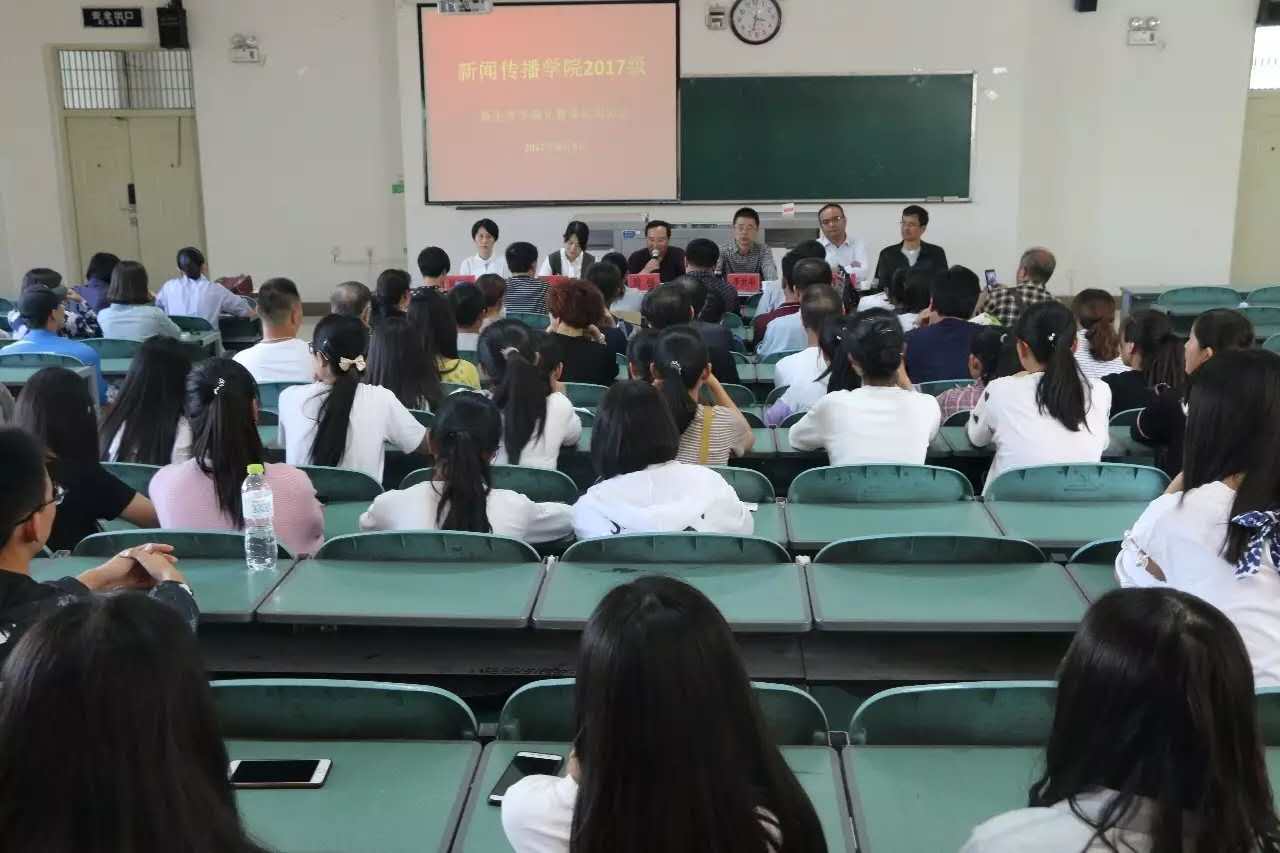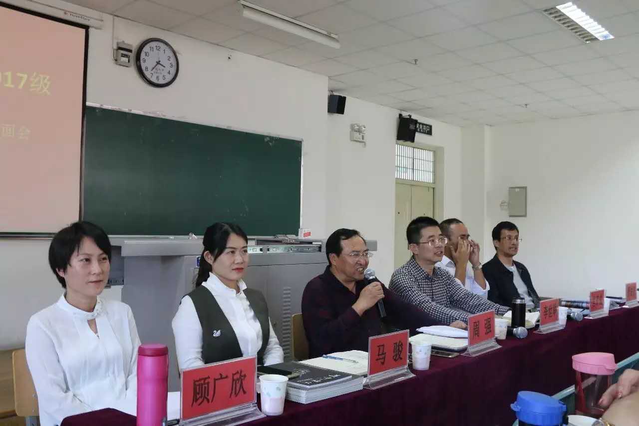 于9月6日下午3点在文科楼130教室召开2017级新生及家长见面会。学院全体领导班子出席了见面会,已报到的2017级新生及其家长参加了会议。