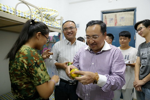 学院领导亲切的问候了新生初入学的困难,细心的查看了新生的住宿环境,耐心的叮嘱他们开学的注意事项,并鼓励他们尽快适应大学环境,融入到学校和学院的大环境中,好好珍惜四年的大学生活,也希望同学们热爱新闻学专业,恪守新闻职业理想,在大学四年中珍惜和利用各种锻炼机会,争取成为卓越的新闻人才。