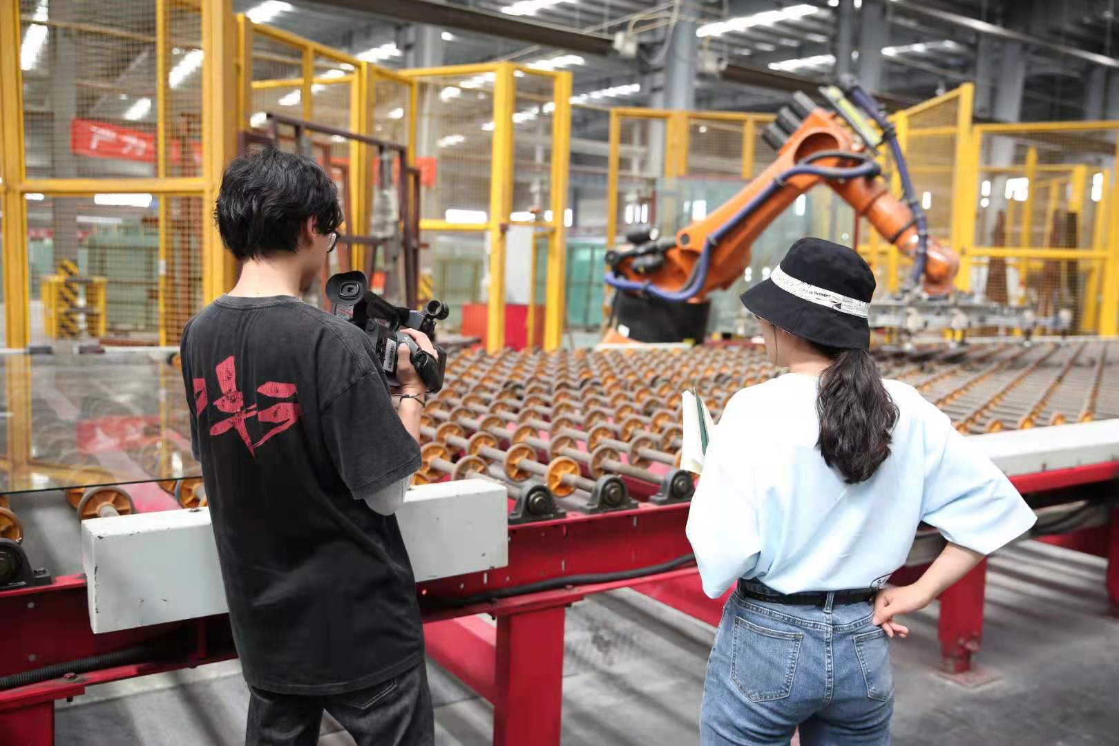 实训小组紧接着走访了宁夏金晶科技有限公司。企管部经理陈建伟在建筑玻璃生产链,从冷端到热端,细致入微的讲解了玻璃制作工艺。通过陈经理的介绍,我们还了解到为积极响应国家新能源产业规划和可持续发展的战略,宁夏金晶科技有限公司在石嘴山市重点建设太阳能光伏轻质面板项目,该项目对推动石嘴山市制造业转型升级,培育战略新兴产业起重要作用,实训小组观摩了初期建设成果。