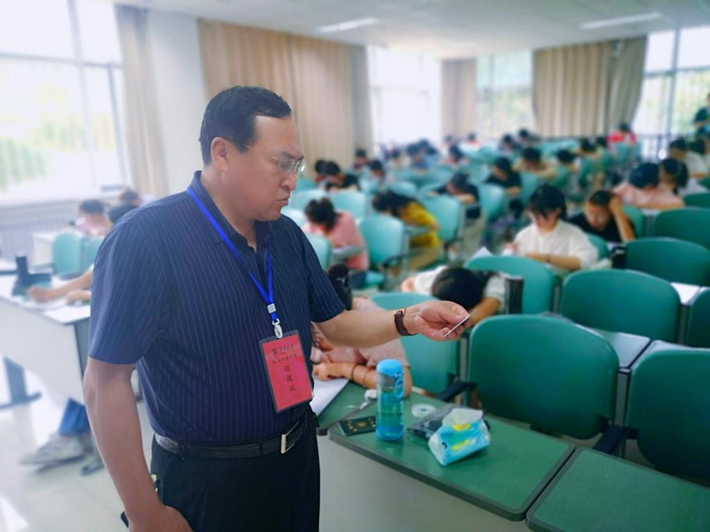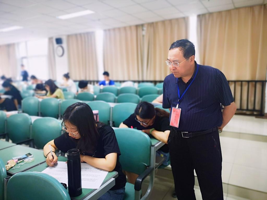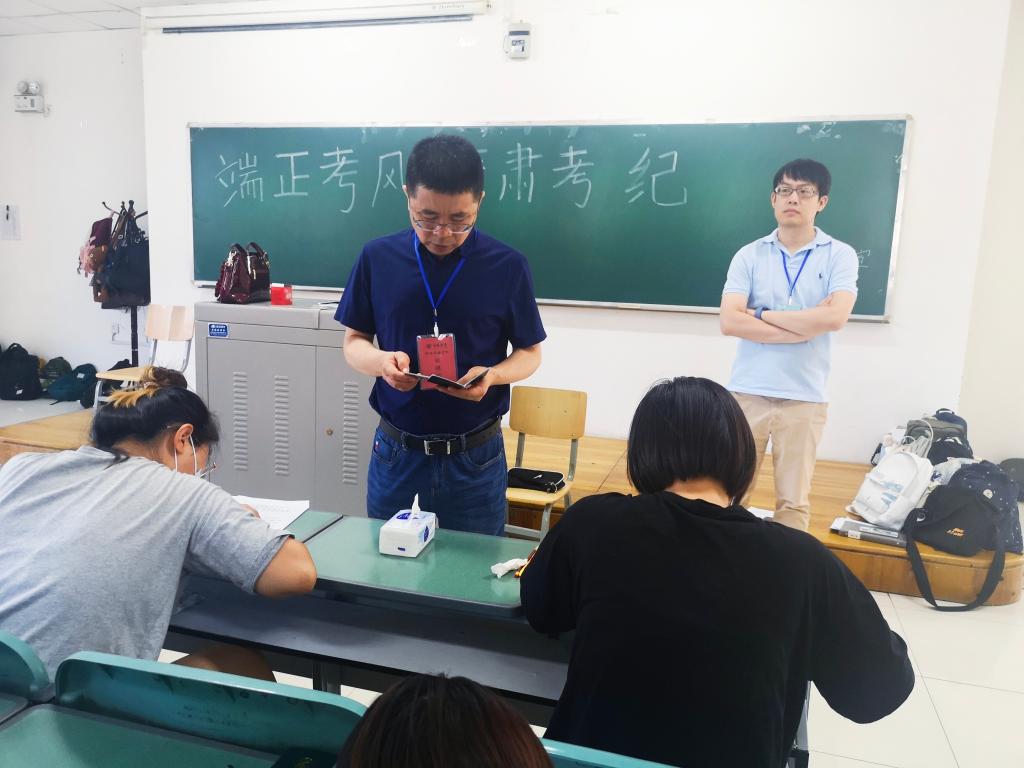 7月5日,学院开始2021至2022年度第二学期期末闭卷考试,为严整考风、严肃考纪,学院党总支书记周强、执行院长李世举、教科办教师雷双军深入考场对学院考场秩序、监考老师履职情况、学生考试纪律等考务工作进行了检查巡视。