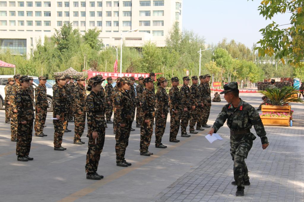 从日出到日暮,汗水湿透军装,划过脸颊,同学们也不曾动摇。这是对军人的渴望,对军魂的敬仰。在这里同学们洒下了辛勤的汗水,收获的将是铁一般的体魄,钢一般的意志,雷厉风行的作风,坚定不移的毅力,这些都将是一个成大事者必备的条件,它是同学们整个大学生活中乃至一生中无比宝贵的财富。