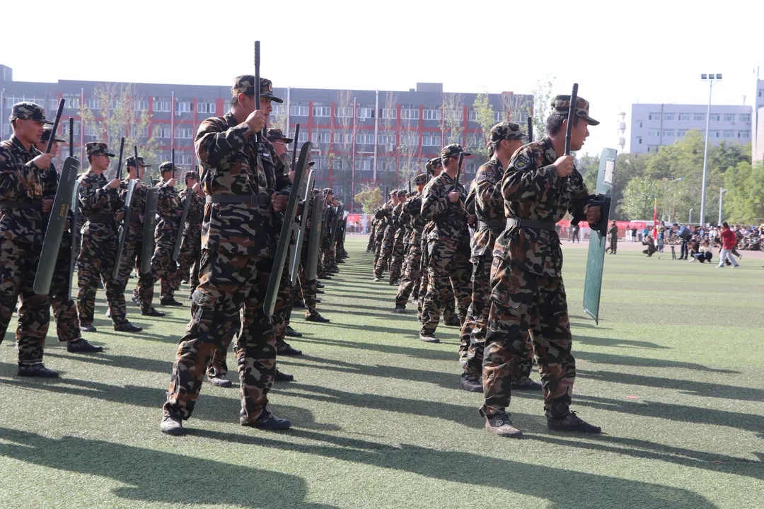 刺刀术,警棍术,彩旗队,匕首操,军歌合唱等一系列精彩演出更是博得一致好评。匕首操中,新传学子打字出棍,上劈下砍,无不展现我新传学子的风采。