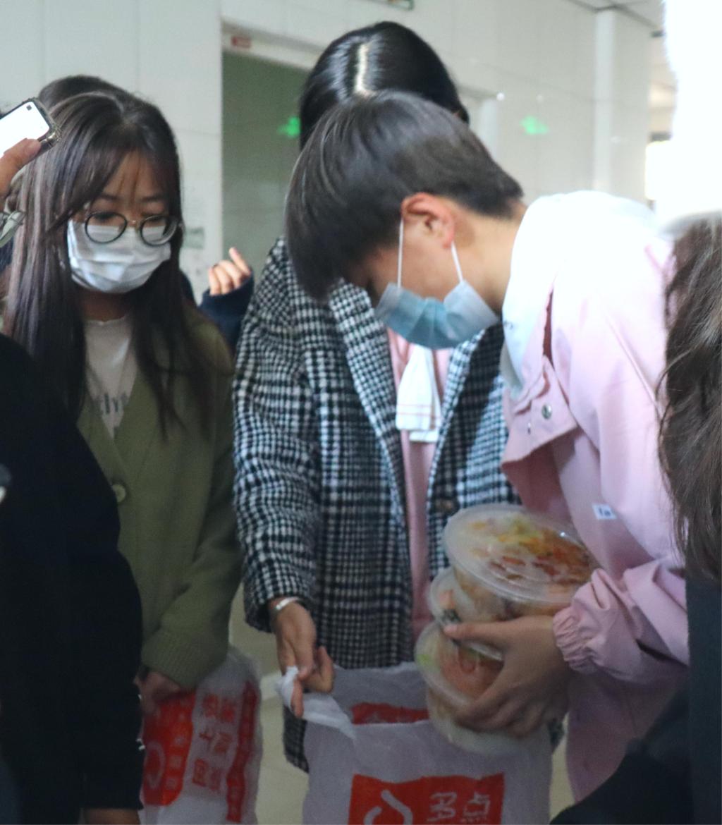 兰山公寓一号楼被封控后,楼外的同学们热情地帮助大家运送三餐,同时也提供购买生活必需品和物资、代取快递等服务,为大家的生活保驾护航,让大家安心地在宿舍生活学习。