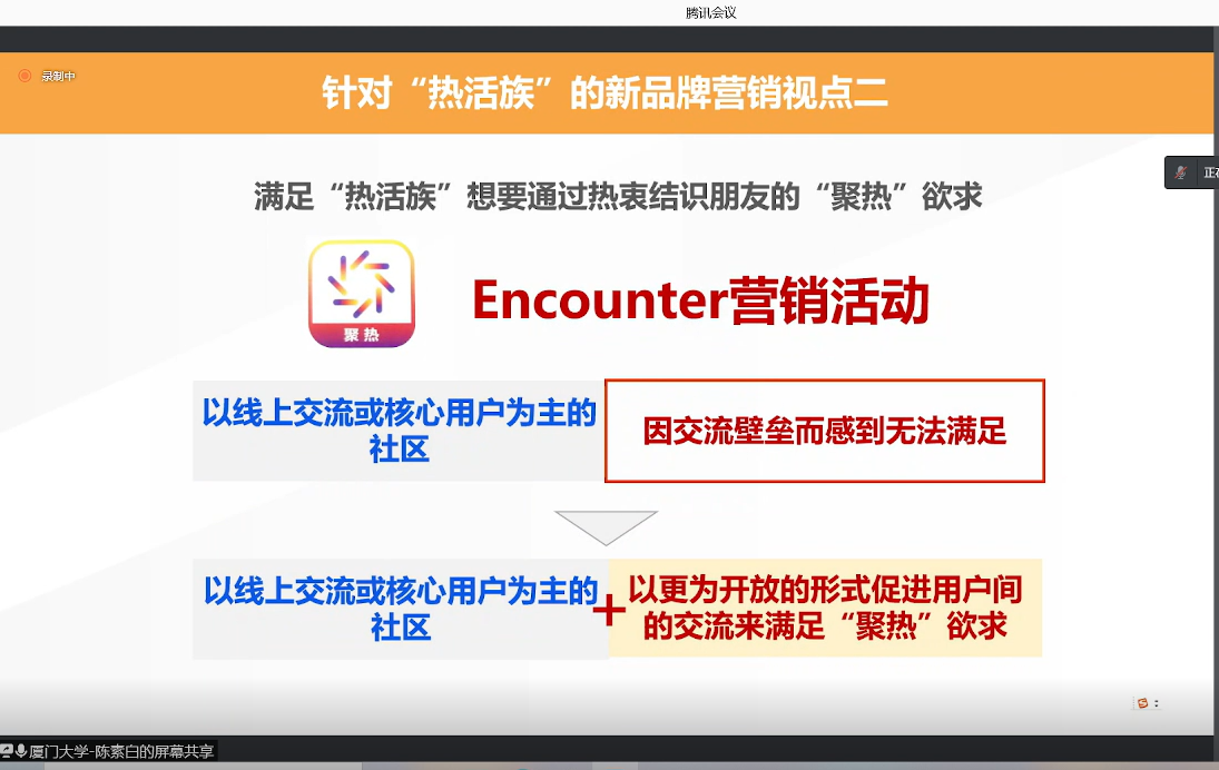 基于享受生活热情的“热活族”的存在,中国生活者所带来的消费潜力巨大,因此探究适应时代潮流的营销方式显得尤为重要。陈素白向同学们深入分析了“年轻化生活者”的欲求变化,并基于这四种欲求变化,引出生活者与企业品牌间新的营销视角“热客论”——以“热活族”四种热衷欲求为切入口,建立品牌与生活者日常所热衷事物的联系,从而达成生活体验型的品牌营销,借助“热衷”来持续加强品牌和用户的关系。陈素白指出同学们要“以‘热活族’为起点,思考如何“创造企业与生活者之间共同的热衷”。