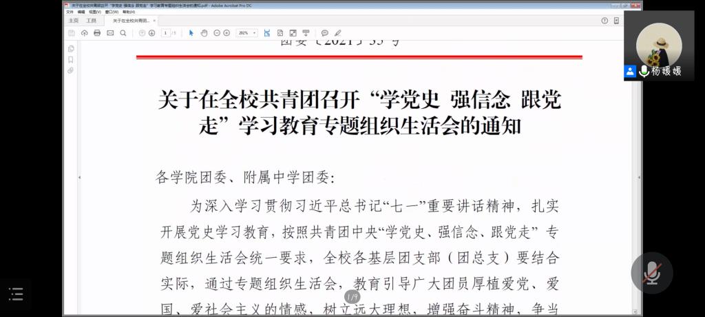随后,杨媛媛对团支部对照参照标准进行了讲解。评定工作采取“五评,双签字”(评班子建设、评团员管理、评组织生活、评制度落实、评作用发挥,团支部书记、团员代表分别签字确认)的方式,同时兼以考察班子工作情况等相关评定标准,带动工作进行。她向各工作人员传达了加强组织领导,层层传达工作信号;坚持实事求是,准确如实开展评定;强化激励约束机制,突出定级结果运用;落实疫情防控要求,线上开展评定工作;及时录入系统,确保工作有序开展的五项要求。