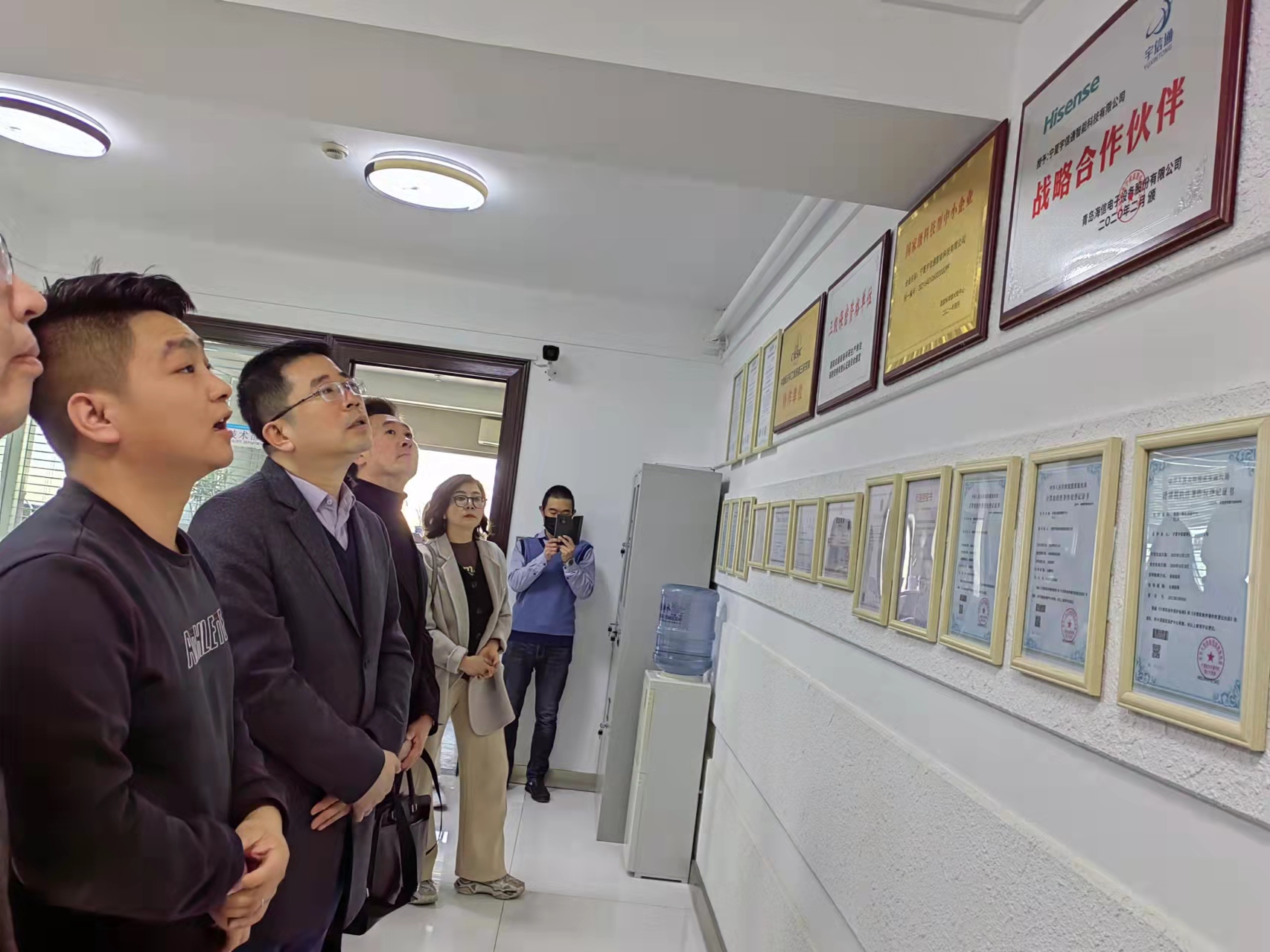 张宴飞介绍了公司基本情况,就业务展示、成果转化、研发领域、产品演示、知识产权、多媒体指挥调度系统等情况进行了说明,双方就如何发挥各自资源,在未来合作方向、合作内容、技术支撑、合作项目等方面展开讨论。李世举表示,双方在AR、VR项目的研发、虚拟模拟仿真场景产品的开发等方面可以深度合作。学院发挥项目内容优势,企业发挥技术支撑优势。