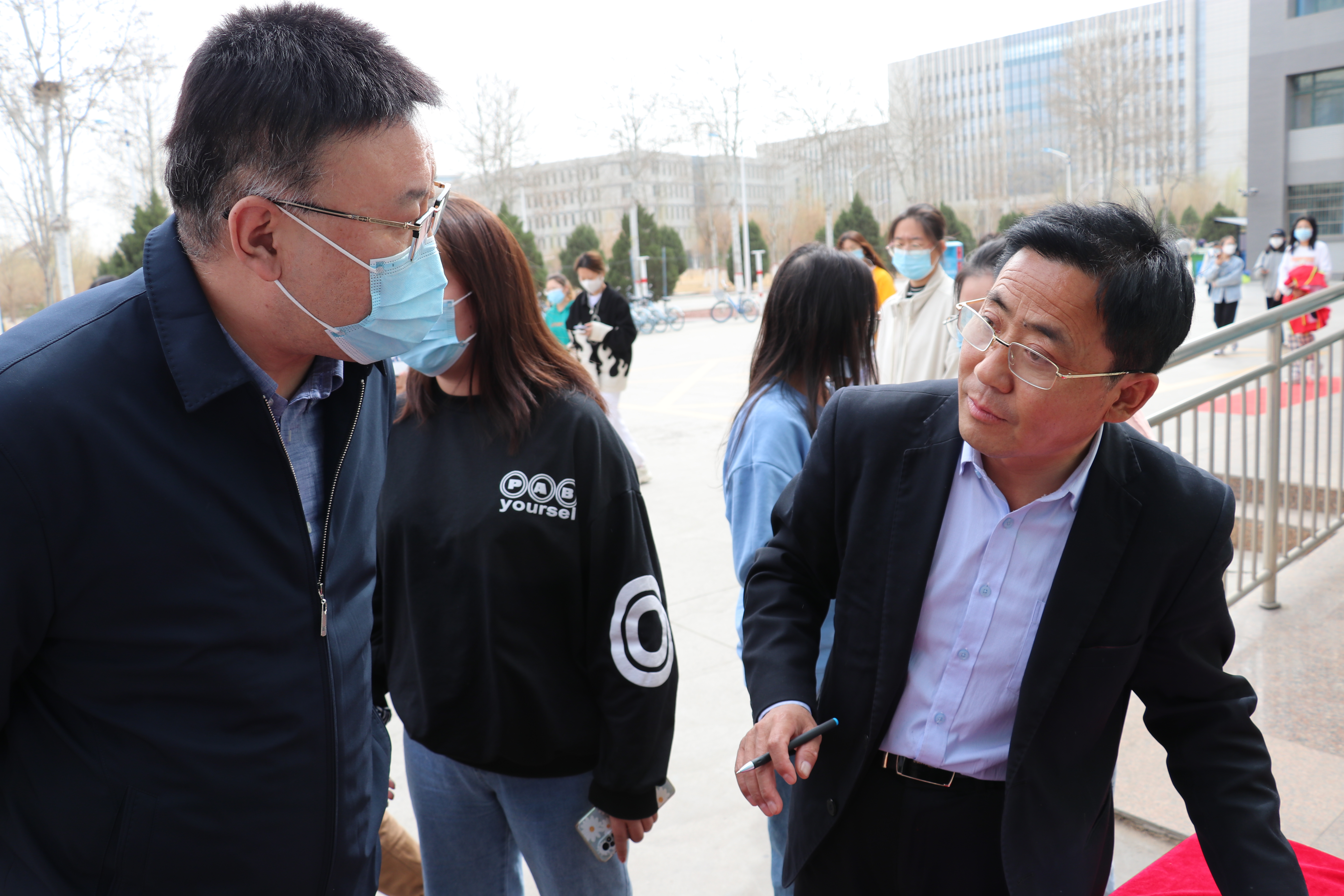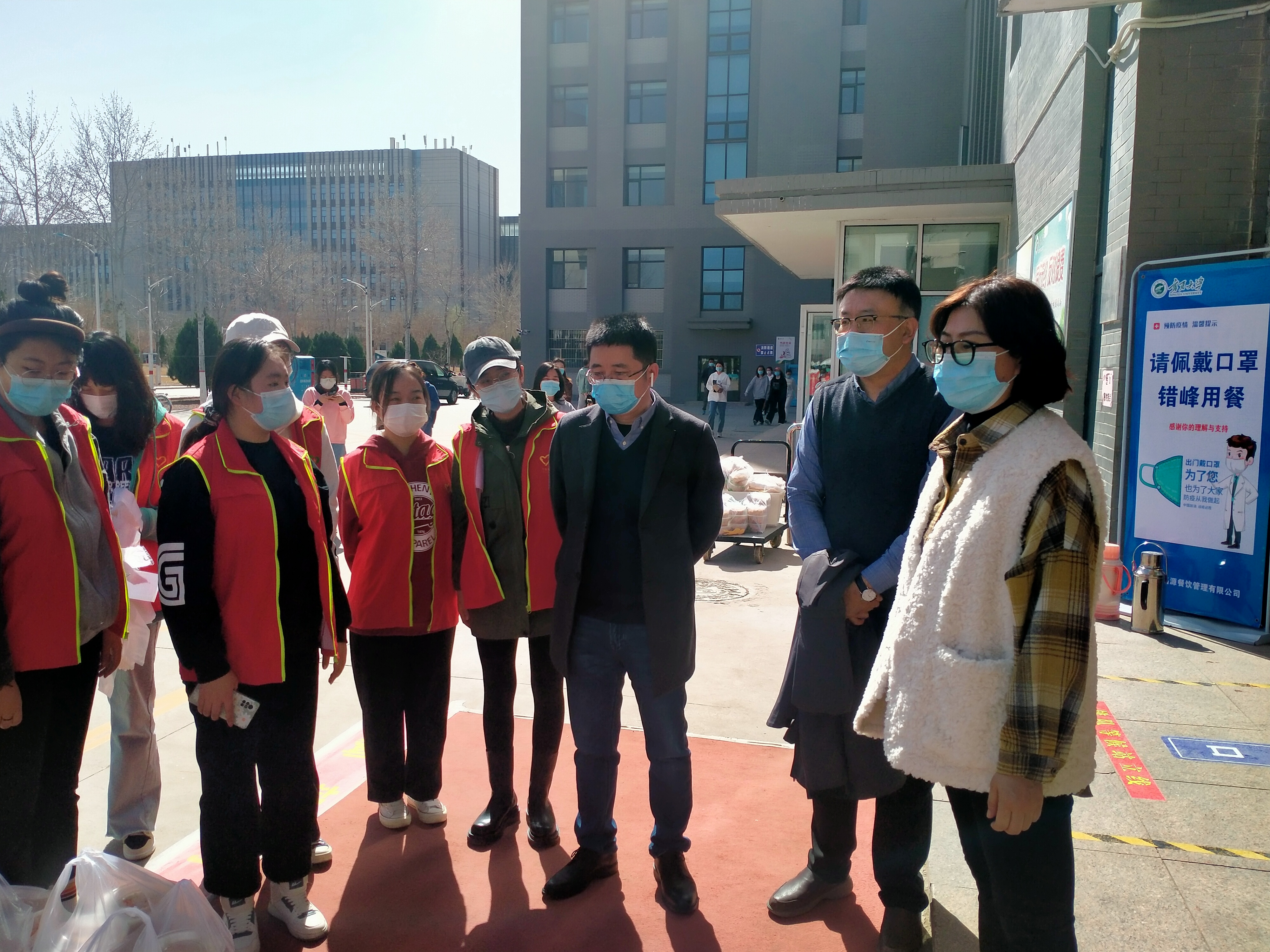 3月15日中午,学院党总支书记潘瑞,执行院长李世举,党总支副书记李晓珉来到志愿者送餐工作点,对志愿者进行慰问。