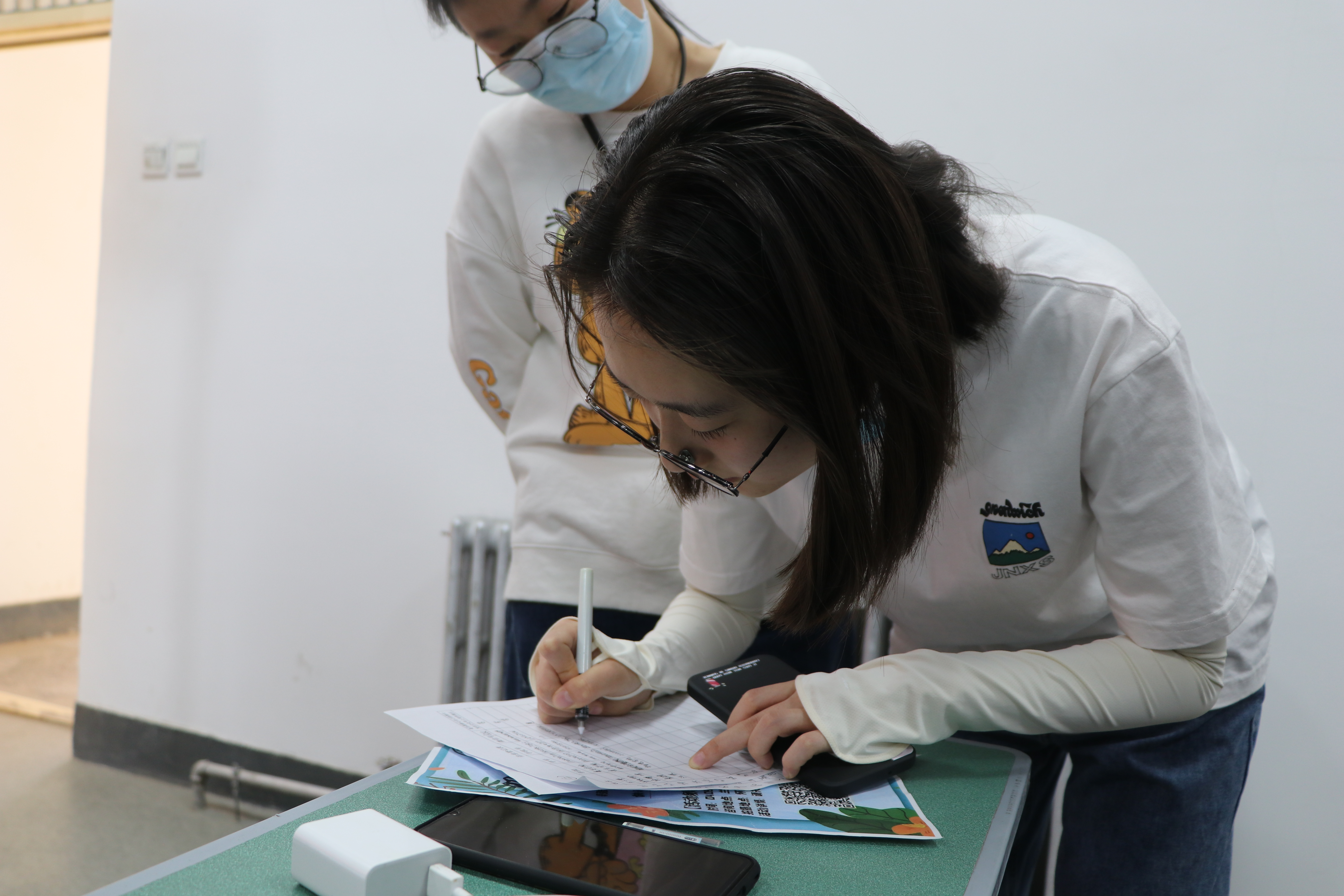 同学们进行登记,志愿者们帮助同学们整理妆容