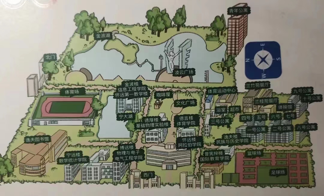 上午九点,三个小组于文萃校区智慧餐厅门口集合,在李鹏强、于晨曦、刘小舟三位学长的带领下游览校区。新生们先后参观了食堂、图书馆、大学生活动中心、操场、凌云广场、金波湖、孔子雕像等校园景观。于晨曦学姐向同学们详细介绍:“贺兰山校区的南大门正对着的雄伟建筑,是校园的主楼。学校的图书馆分别设立于文萃校区和怀远校区,同学们可以在那里漫游书海,也可以在众多自习桌中找到属于自己的学习天地。”
