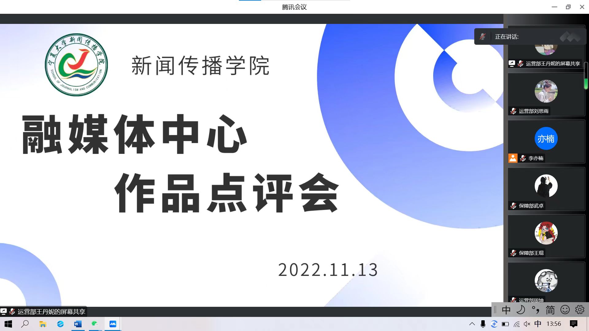 本次点评会在肯定以往工作的同时指出了现存问题,对部门的下一步发展有指导意义。会后,同学们纷纷表示今后会重视老师指出的问题,并将老师们分享的工作经验更好地运用在工作实践中,为进一步讲好新传故事,传播新传声音,奉献一份力量。