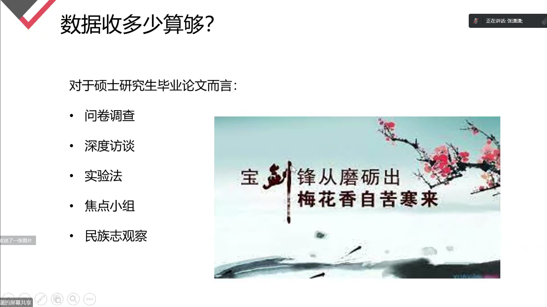 在互动环节,张潇潇解答了同学们关于收集数据的量化方法、研究样本量及有关敏感选题方面的问题。