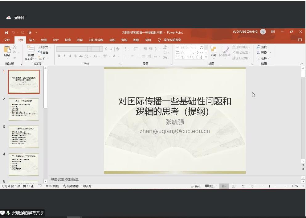 张毓强专场围绕“对当前国际传播一些基础性问题的认识”,从基于实践的问题意识、基本概念及其背后的问题、国际传播实践的成效、当下问题与战略目标等八个方面展开讨论。他认为国际传播的四个基本问题包括内宣与国际传播、国际传播中的舆论斗争、效果的正面与负面、国际传播实践中如何落实四个自信。他强调,国际传播要防止西方中心主义,做到自信、真实、客观、立体,姿态上呈现“对话不对立,友好不讨好,亲和不迎合”。他指出,国际传播的理论研究和实践,需要深入理解中国,国际传播中的舆论斗争要讲道理、有逻辑,向知行合一的方向发展。