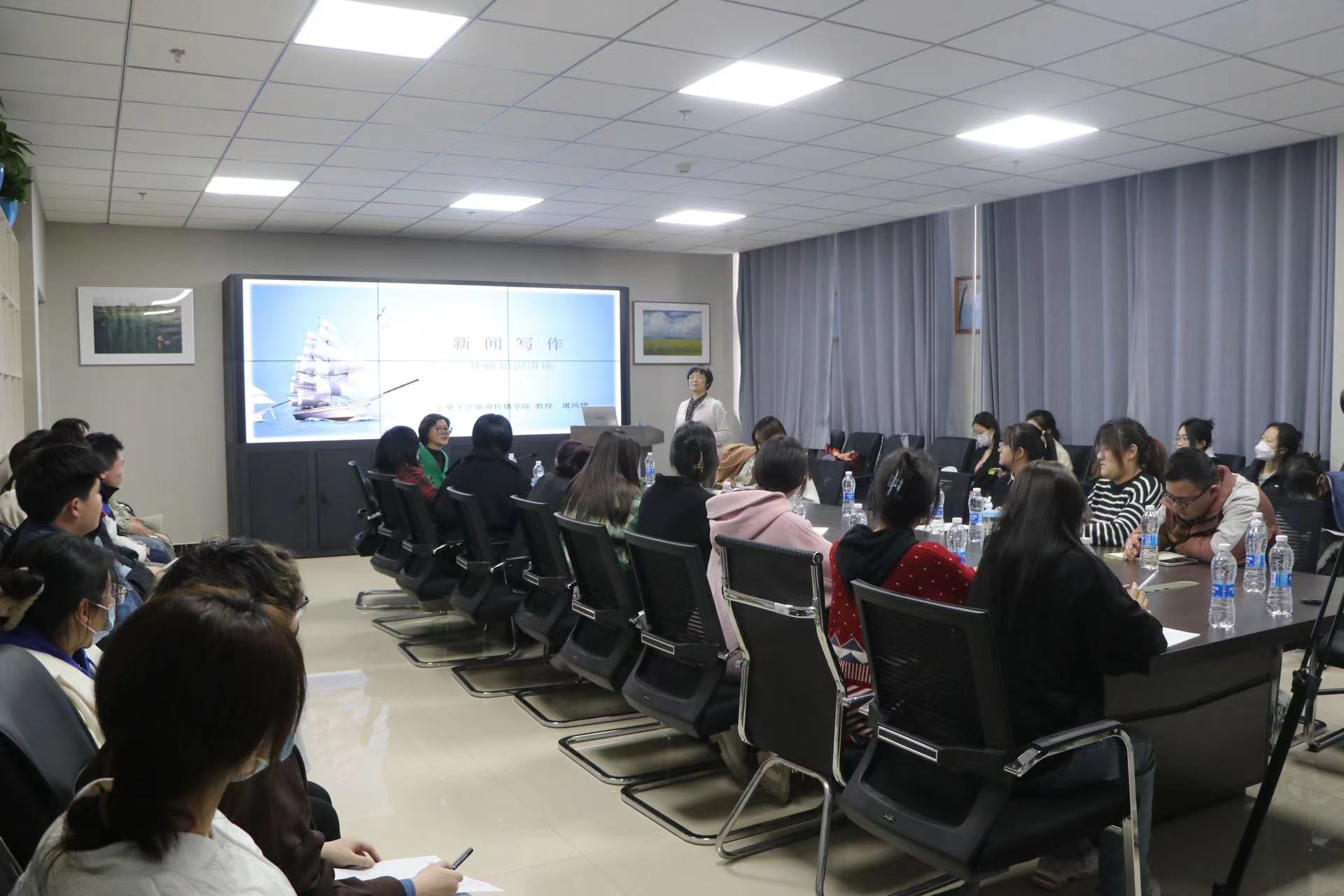 屠凤娥引用俗语“授之以鱼,不如授之以渔”点明此次培训的目的:学生须学习并掌握新闻的写作规律,举一反三,为众多类型的新闻写作打好基础。她介绍了提高新闻写作水平的步骤及方法,希望同学们在掌握基本采写理念的基础上广泛阅读,勤加练习。