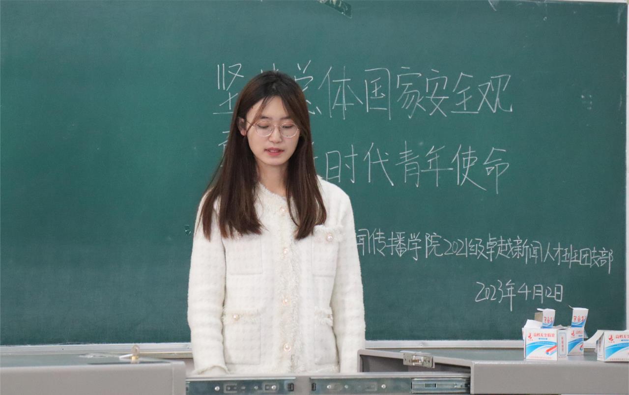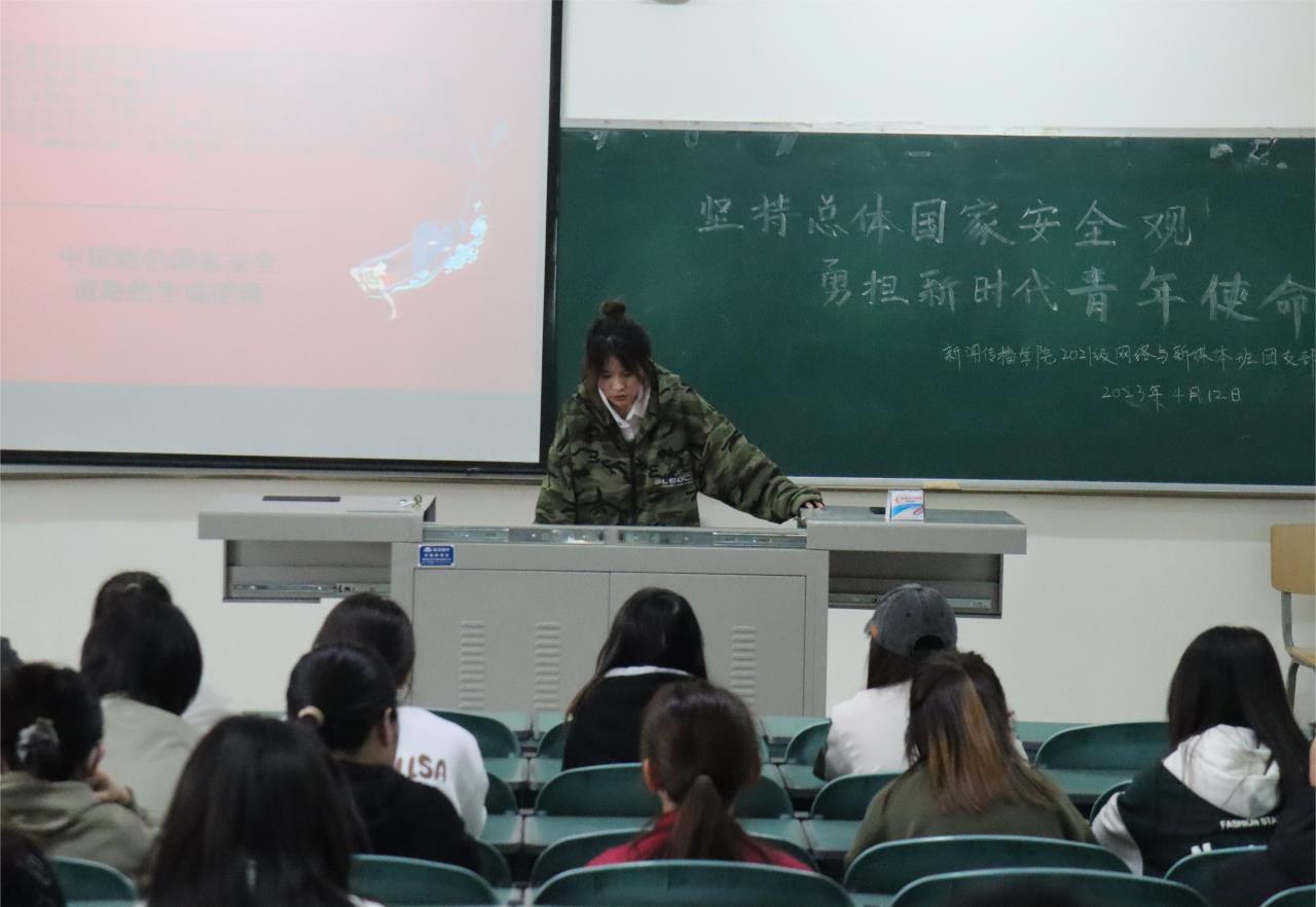 为深入学习贯彻党的二十大精神,4月12日晚我院于文荟楼组织开展了以“坚持总体国家安全观,勇担新时代青年使命”为主题的团日活动。2021级、2022级全体本科生参加了此次活动。
