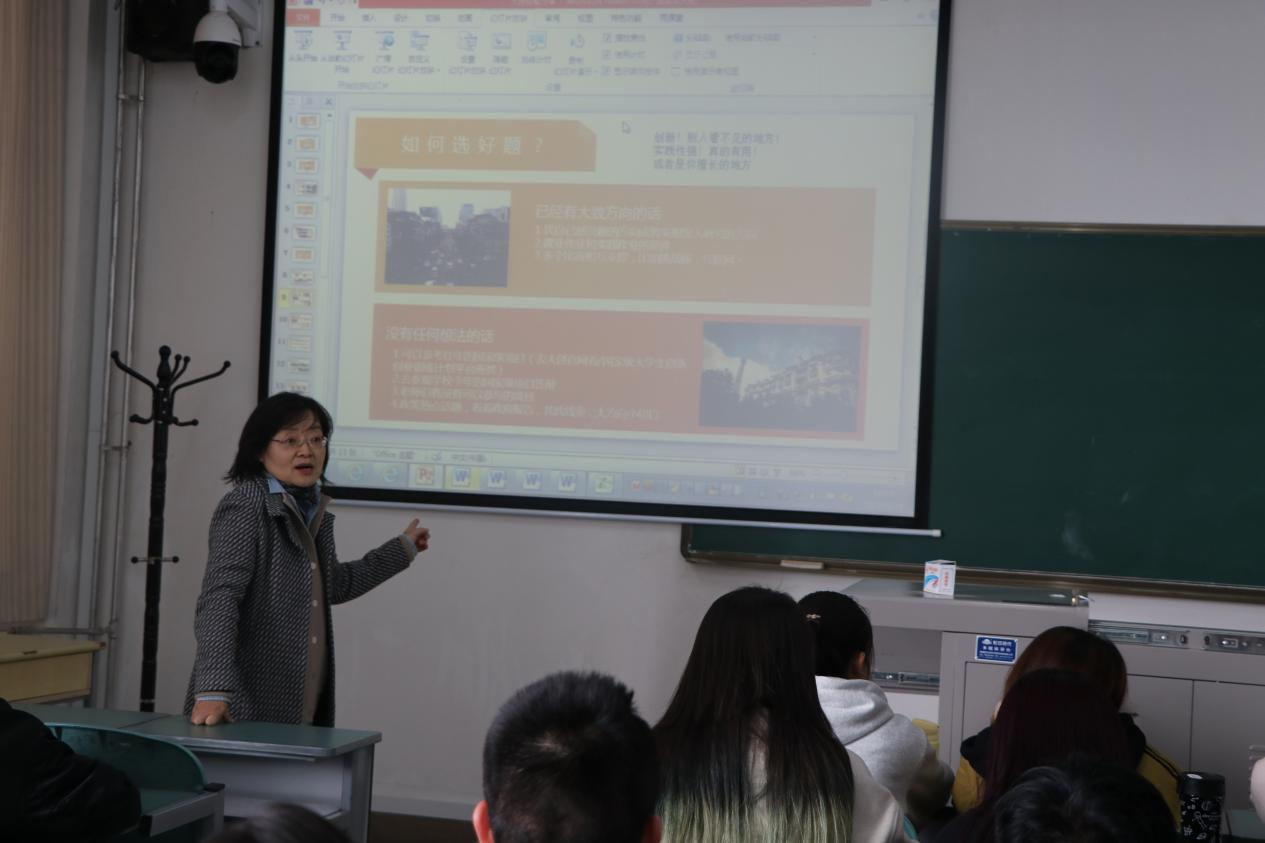 王雪蕊结合切身经历,围绕大创是什么、做大创的意义和做大创的方法等三方面深入浅出地讲解了大创项目申报的相关知识。王雪蕊认为做好项目最重要的是选题,要立足于生活,从自己擅长且感兴趣的内容入手。她结合自身实践经历,从专业学习、未来深造与自身能力提高等角度切入,向同学们展示了参与并完成大创项目的意义。同时她还谈到了近年来大创项目的新政策与新颖选题,进一步分析了申报并完成大创项目对于拓展大学生知识面广度和深度的积极作用。