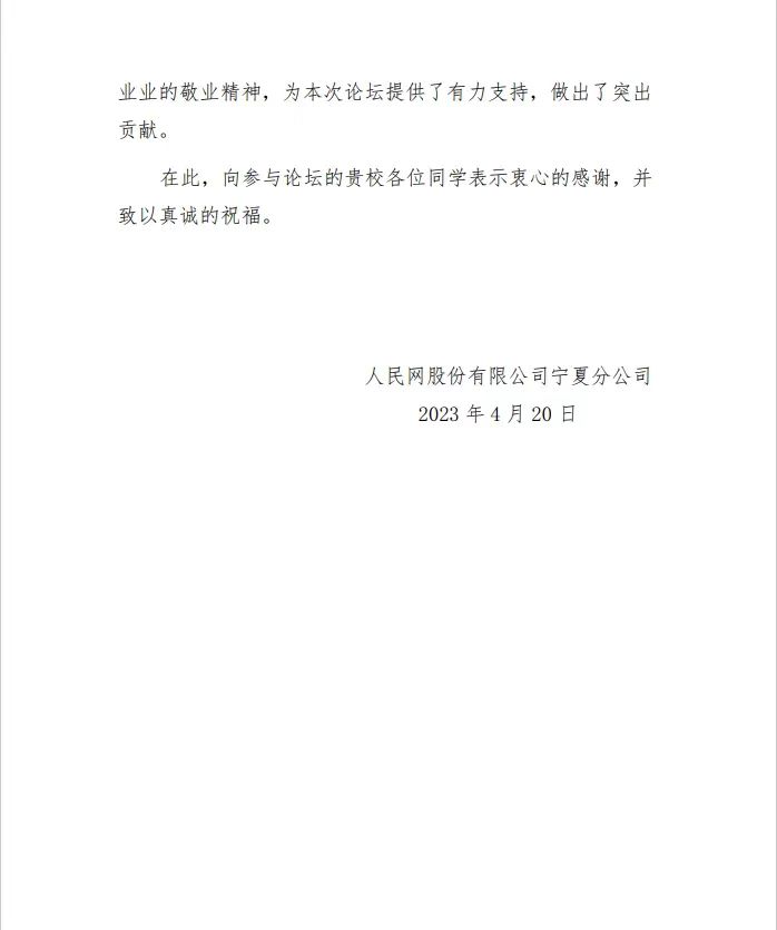 4月23日,我院收到人民网(宁夏频道)发来的一封感谢信,信中对我院今年于该单位实习的2019级本科生王锡彬、崔洋、刘天怡以及2022级研究生龚佩君、尹娜、杨硕在实习中的优异表现提出了表扬。