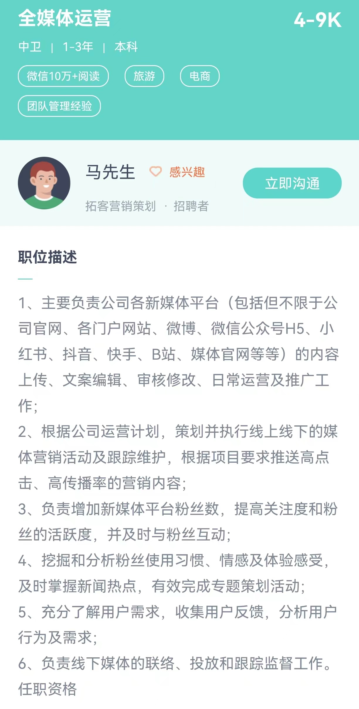 岗位:全媒体运营