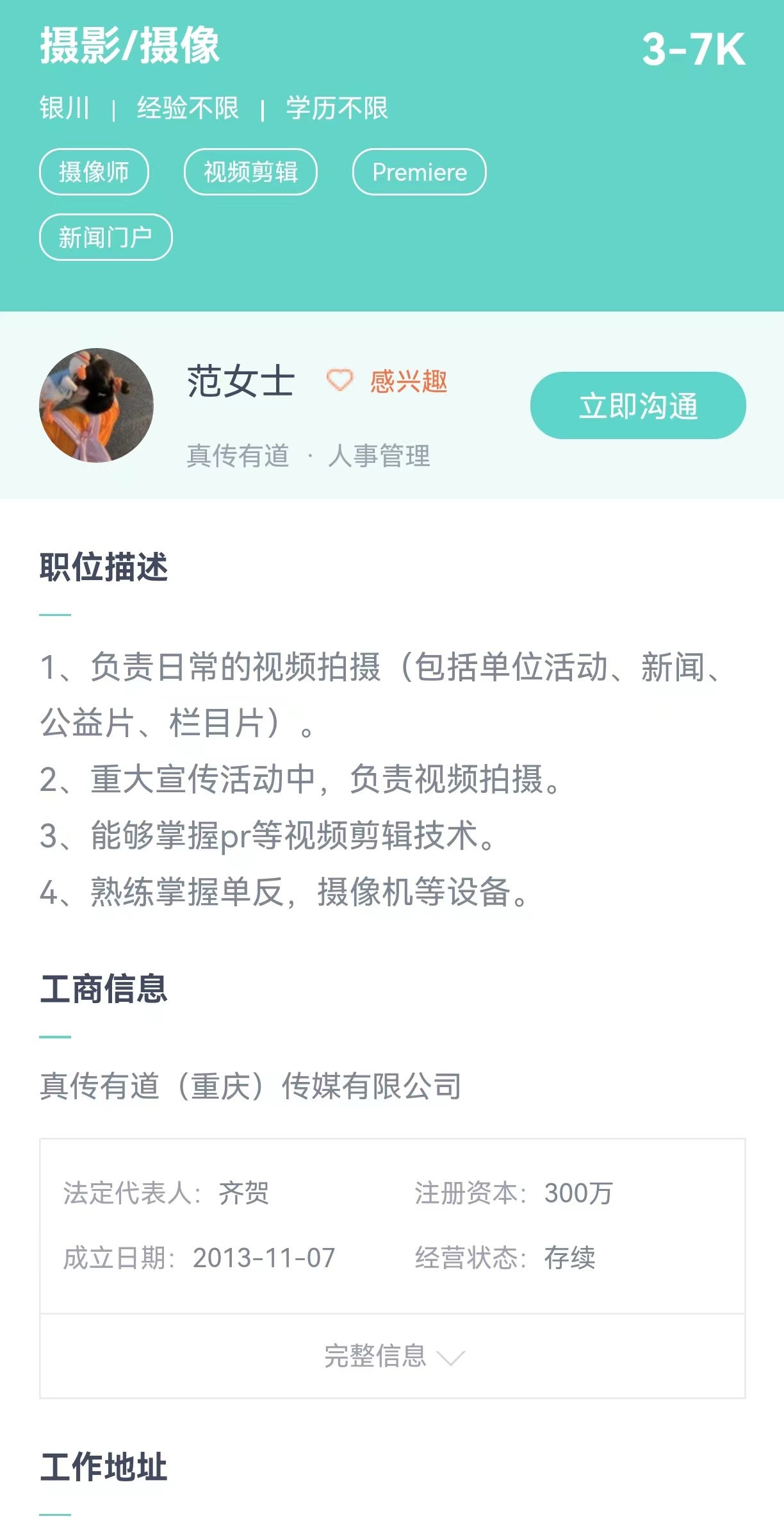 岗位:摄影/摄像