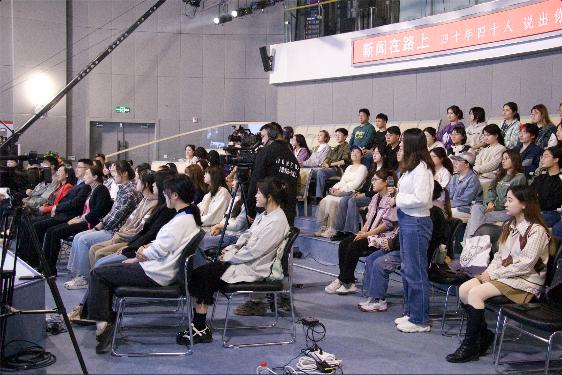 王庆同教授现场回答学生们提出的“四力”之首笔力这个问题时谈到,笔力是新闻人内心世界在笔头上的表现,不是一种简单的文字表达,更是反映了我们的人生态度。”同时他表达了对新传学子的期望,希望同学们在以后的学习中接受内心的外化,避免笔头上的做作,不断丰厚自己的内心,追求发自内心,最真诚的表达。