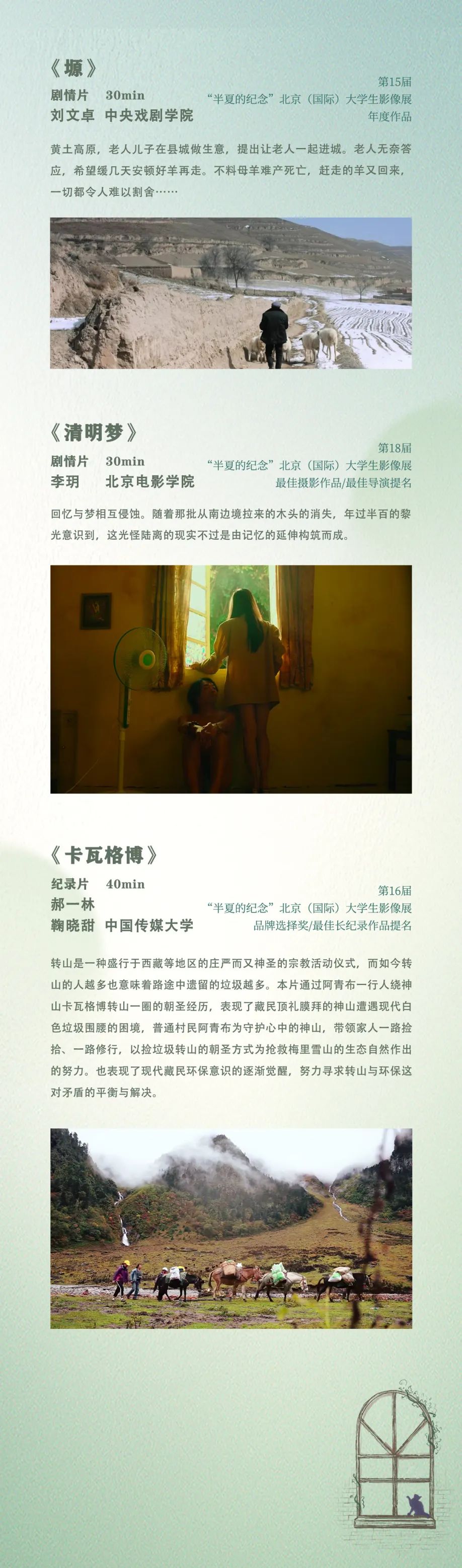 ,我们从展映影片中精心挑选了3个单元的优秀作品,于5月26日-28日每天下午19点至21点在新闻大楼演播厅为同学们带来3场展映,期待大家的到来。