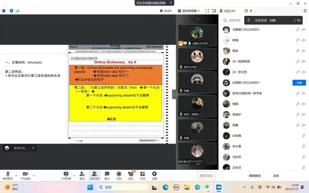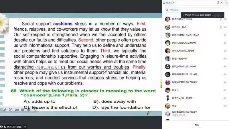 为了帮助同学们应对大学英语四六级考试,了解考试题型与流程,掌握考试技巧,提高应试能力,进一步增强同学们的学习动力和考试信心,5月27-28日,我院于线上举办四、六级帮扶活动。本次活动由外国语学院刘畅、吴文和顾丽花主讲,学院部分同学参与了此次活动。