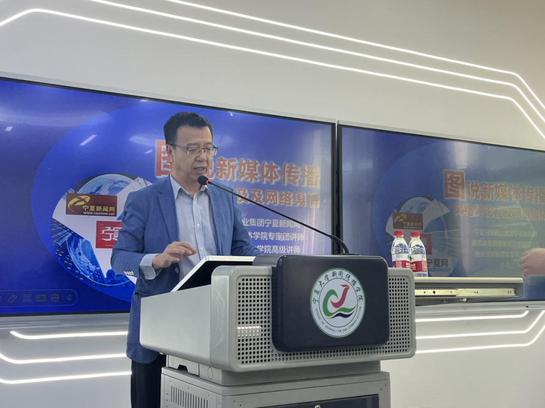 为帮助同学们更深一步了解新媒体传播、网络评论、网络舆情、新闻策划方面的研究。4月26日上午,学院特邀宁夏日报报业集团宁夏新闻网副总编辑马江做了题为《图说新媒体传播、网络评论及网络舆情》讲座。学院党支部书记苏洁老师到会,谢明辉教授主持讲座,2023级新闻与传播研究生、2021级卓越班和网新班的同学聆听了讲座。