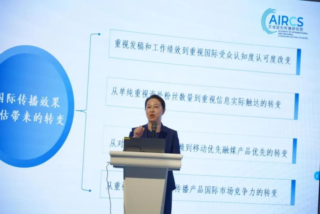 中国传媒大学区域国别传播研究院执行院长、教授、博士生导师周亭分享了关于《面向区域国别的传播效能评估体系建构》的研究成果。她聚焦国际传播研究中的核心议题——传播效果评估,分享了其系统性的前沿思考,深入探讨了融合行为数据、神经生理测量及社交媒体大数据等多模态研究方法,为科学评估受众认知与传播效能提供了新路径。