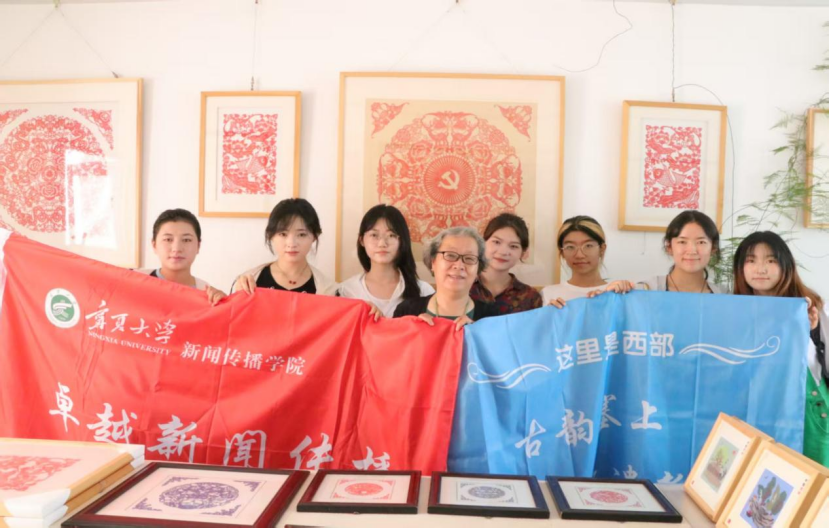 银川组17名师生迎着盛夏晨光,前往银川市贺兰县文联文创基地,开展“这里是西部——古韵塞上 非遗新声”国情区情调研以及实践采访活动。