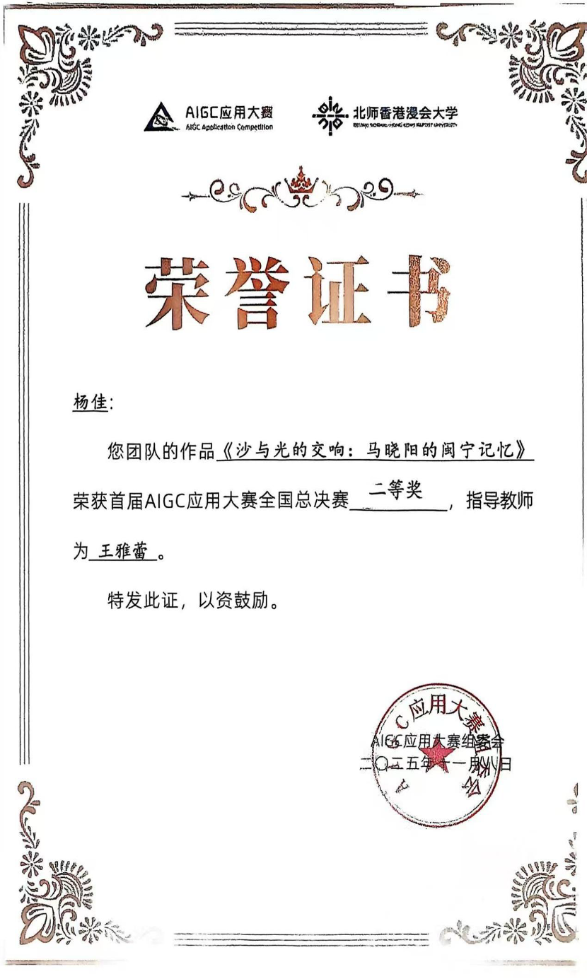 作品简介:以动漫短剧为载体,通过马晓阳的个人经历,展现闽宁镇从荒漠到繁荣小镇的蜕变,以及加入马晓阳结婚后与媳妇看新宁夏的情节,进一步呈现宁夏的发展成果,传递坚韧不拔、携手共进的精神,借助AIGC技术高效完成创作,探索单人利用AI工具进行动漫创作的可行路径,让更多人全面了解闽宁镇及新宁夏的发展故事与时代精神。